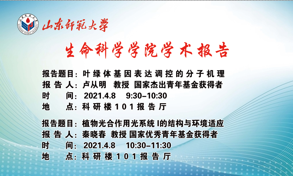 山东农业大学卢从明教授和济南大学秦晓春教授4月8号来我院做学术报告